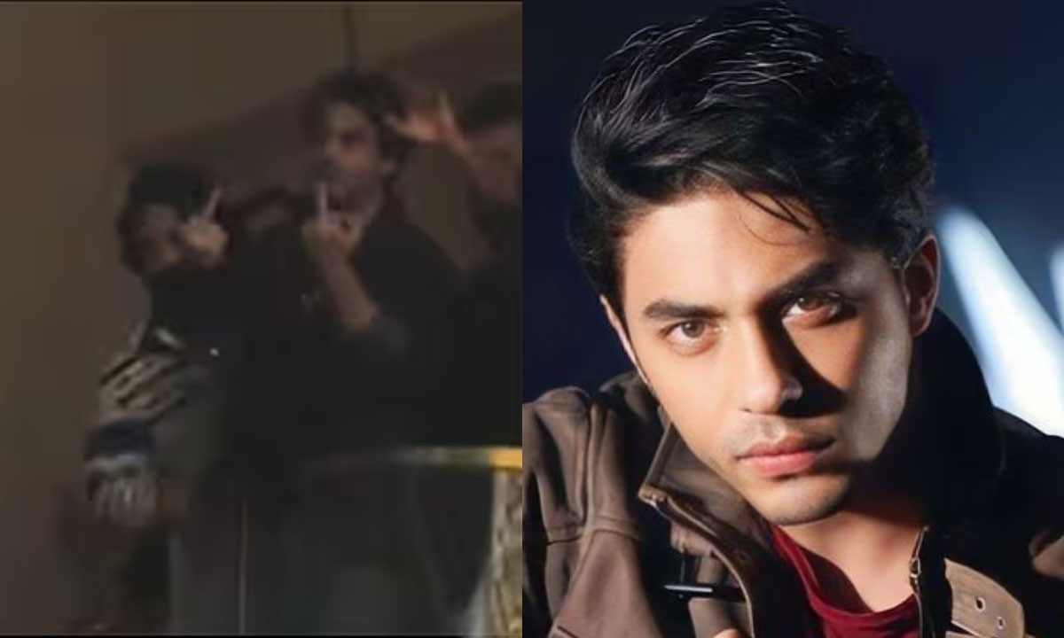 A video of Aryan Khan is going viral, showing him flashing his middle finger to fans at a pub launch event in Bengaluru.;