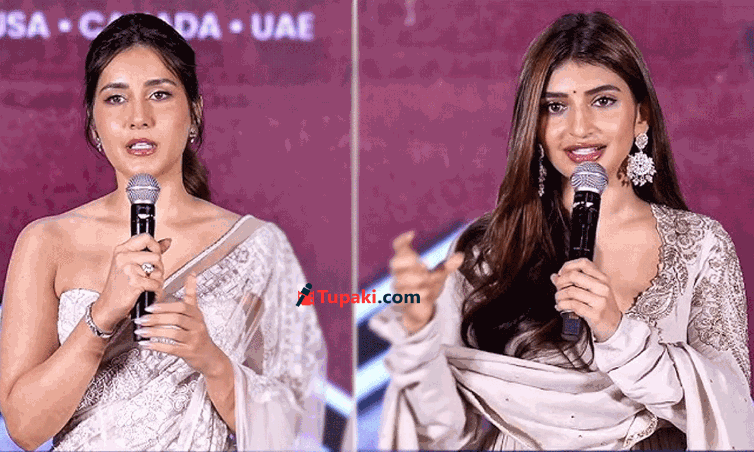 On the other hand, Sreeleela is maintaining that conservative look as she appeared in a saree and full-sleeve blouse at the pre-release event, and now in a white churidar at the pre-release press meet. Looks like both heroines are actually maintaining their respective looks from the movie. However, some say that Sreeleela wants to cut down the glam quotient at public events like Anushka, while Raashi continues to wow the audience with her spicy appearances at film events.