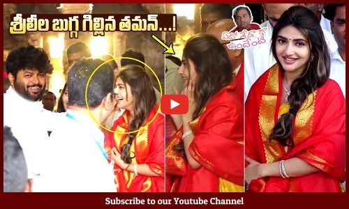 శ్రీలీల బుగ్గ గిల్లిన తమన్😍❤️: SS Thaman Fun With Sreeleela Infront of Her Mother In Tirumala Temple
