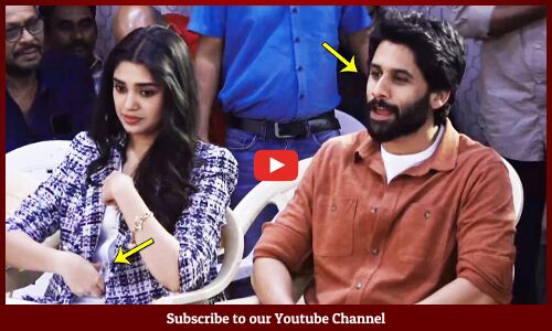 Naga Chaitanya CRAZY Looks Towards Krithi Shetty Visuals at Custody Movie Blockbuster Success Meet