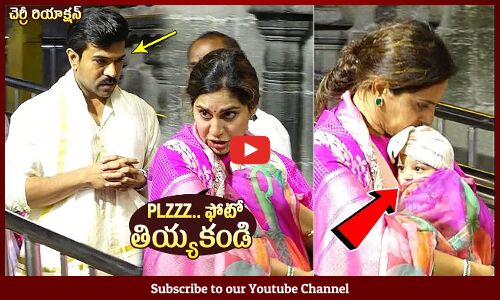 Ram Charan Upasana Daughter Klin Kaara Face Reveal At Tirumala | Klin Kaara Visuals | Tupaki