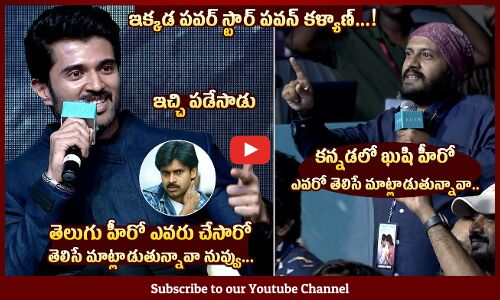 Vijay Devarakonda Goosebumps Reply To Kannada Reporter About Pawan Kalyan @ Kushi Trailer Event