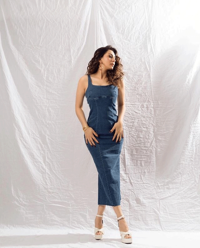 Today, Hansika embraced the spirit of Denim Day with a touch of casual chic. Dressed in a stylish denim dress, she exuded effortless coolness with her open hair adding a relaxed touch to the look. Her confident pose radiated a carefree vibe, showcasing Hansika's ability to rock a variety of styles, from glamorous on-screen appearances to laid-back off-duty looks.
