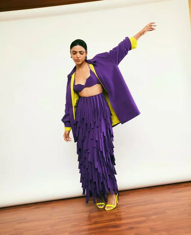 By: Tupaki Desk | 18 April 2024 2:18 PM ISTShriya Pilgaonkar is causing a stir on Instagram with her latest pictures, sending fans into a frenzy. In the snapshots, she dazzles in a purple top and a furry midi skirt, paired with a stylish blue coat. Adorned with elegant ear jhumkas and sporting a chic ponytail, she completes the look with striking green heels.