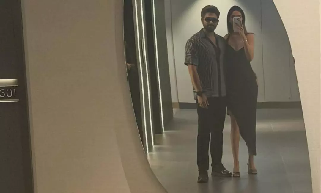 The couple’s fashion in the photos also grabbed attention. In one picture, Allu Arjun appears in a beige oversized T-shirt paired with light denim jeans and casual footwear. He also wears stylish tinted glasses and keeps his beard neatly groomed.