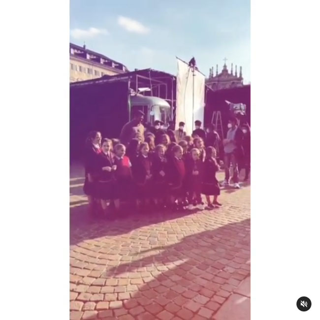 Here, we can see Prabhas standing behind a bunch of adorable Italian kids for a click after the shooting has been wrapped up. It looks like they canned a shot or two with these kids. Prabhas is looking dashing in a stylish modern avatar. With trendy goggles and a turtle neck T-shirt, he is handsome as ever with his cool attitude.