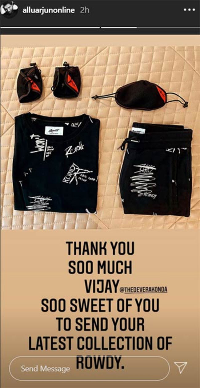 Allu Arjun has thanked the good heart of Vijay and showed his acknowledgment that he liked the gift in an Instagram status!