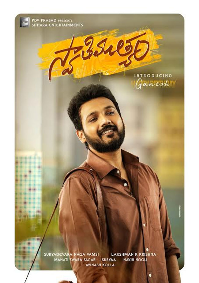 On the occasion of his birthday, Sithara Entertainments banner who are bankrolling one of Ganesh's three projects have released a special poster. They wished him and revealed that the title of the movie is 'Swathi Muthyam'. The first look poster looks cool with Ganesh perfectly fitting the bill of a youngster going to the office with a bag hanging on his shoulder.