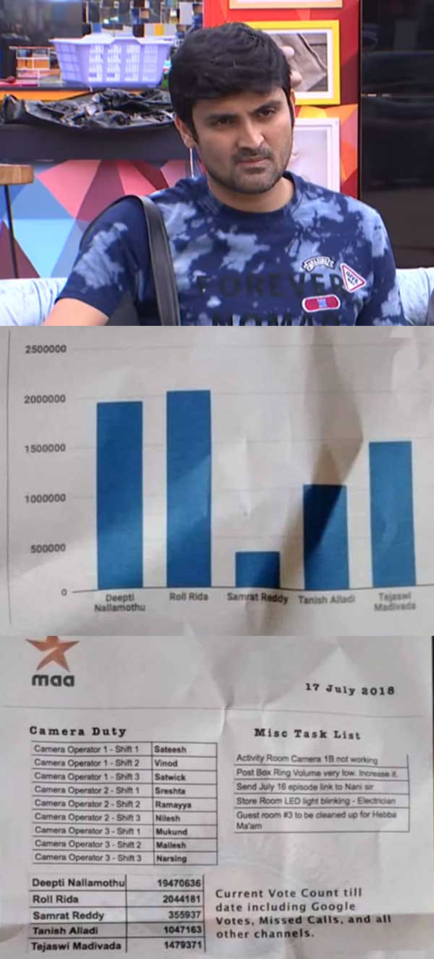 As per the latest leak, Votes polled for Samrat are far less than Deepthi, Roll Rida, Tejaswi and Tanish who are in elimination zone. The leaked document could be prepared by one of the unit members of the reality show.