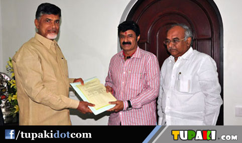 Balayya name announced in third list of candidates and here is the pic of Baalayya where he was receiving the B form from his Brother-in-law Chandrababu.Balayya will be filing his papers of nominations on April 16 and the local leaders of Hindupur Telugu Desam Party have all set ready for Balakrishnas nomination