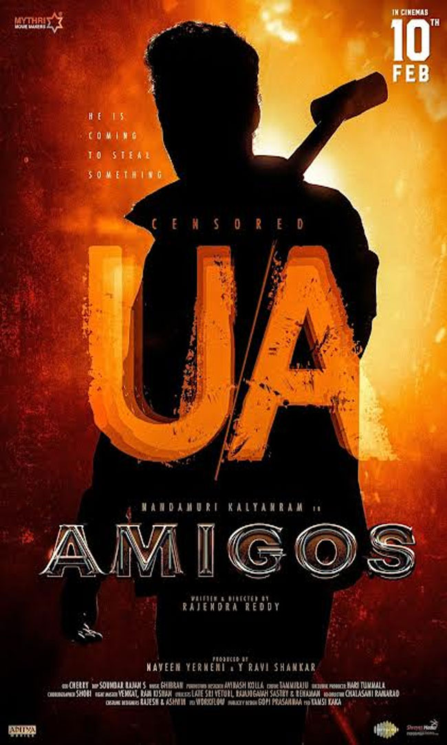 The censor report of the movie is out now and the makers officially revealed that 'Amigos' was given a 'U/A' certificate. They released a dynamic poster that showcases the silhouette of Kalyan Ram holding a big sledgehammer in his hand. It has been written that 'He is coming to steal something' on the poster and we need to see what the lead character is about to do. Fans are very excited about this movie as it is Kalyan Ram's immediate film after a super hit like 'Bimbisara'.