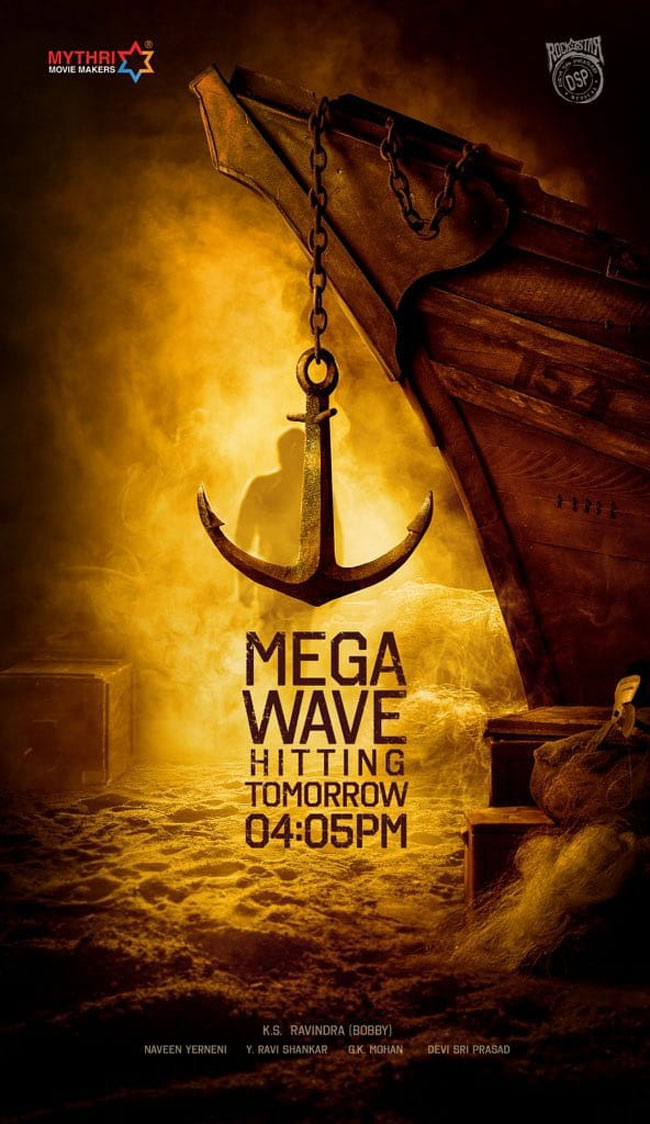 The pre-look poster itself catches the attention of the viewers. We get to see a suggestive shot of Chiranjeevi in the background as a heavy anchor is highlighted in the poster. This might be some sort of indication about the film's theme. We can expect an affirmative update in this regard later tomorrow.