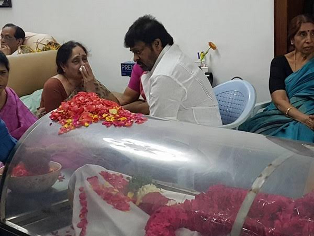 Chiranjeevi and his Wife Surekha rushed to the house of Sekhar Babu to pay last respects soon after knowing about the news. Megastar got very emotional upon seeing the mortal remains of his 'Mutha Mestri' Producer and while consoling his wife. At one stage, He had tears in his eyes.
