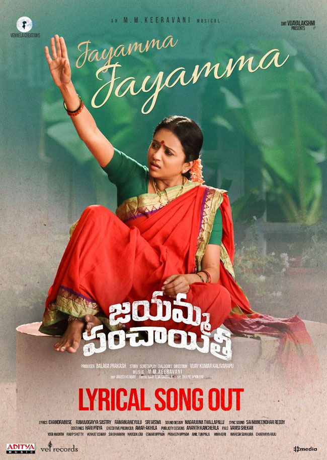 Sensational director SS Rajamouli did the honours of unveiling the title song of Jayamma Panchayathi. The title song takes us through the world of Jayamma. The beautiful lyrics came from the pen of Ramajogayya Sastry lists out the characteristics of Jayamma and projects her role.