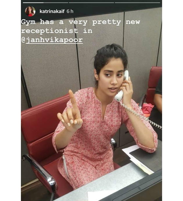 Katrina Kaif shared a photograph of Janhvi Kapoor on her Instagram page with the message, 'Gym has a very pretty new receptionist in Janhvi'.