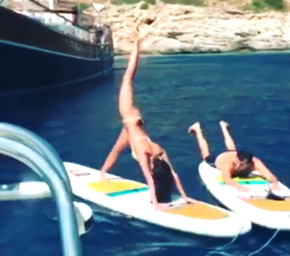 Caught on cam: Bikini-clad Heroine's Yoga at Beach!