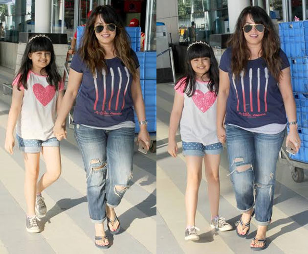 By: Tupaki Desk | 14 March 2016 6:09 PM ISTRemember the 'Pardes' Beauty, Mahima Chaudhary. Shutterbugs didn't miss capturing this Senior Actress while she was was exiting Mumbai airport along with her cute daughter Ariana.
