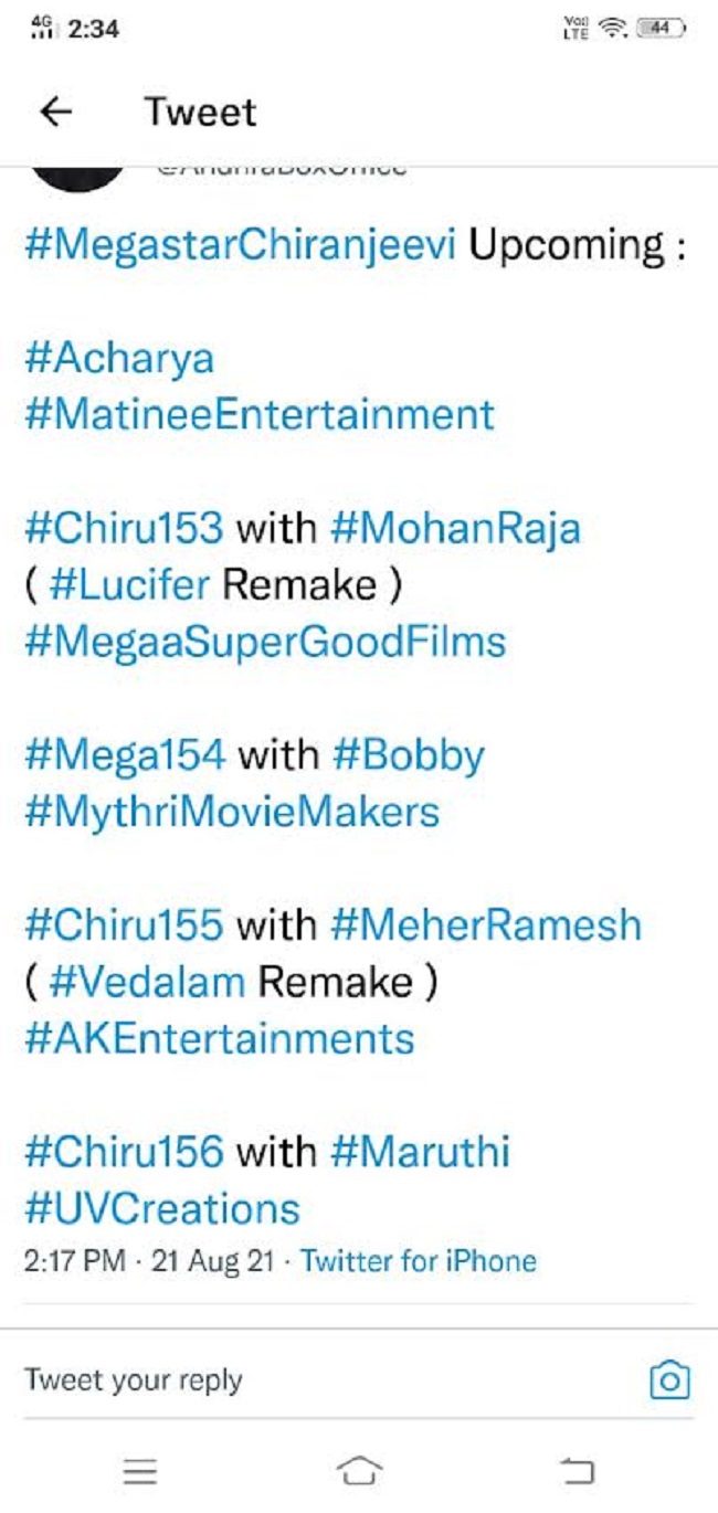 By: Tupaki Desk | 21 Aug 2021 5:25 PM ISTThere are a lot of star heroes who do not know what their next project is except the one film they are doing right now. They spend a lot of time on one single project but here we have Megastar Chiranjeevi is racing ahead of every other hero by lining up four movies that will come out in the next 2-3 years. He will be celebrating his 66th birthday on Sunday and here is a list of his upcoming movies: