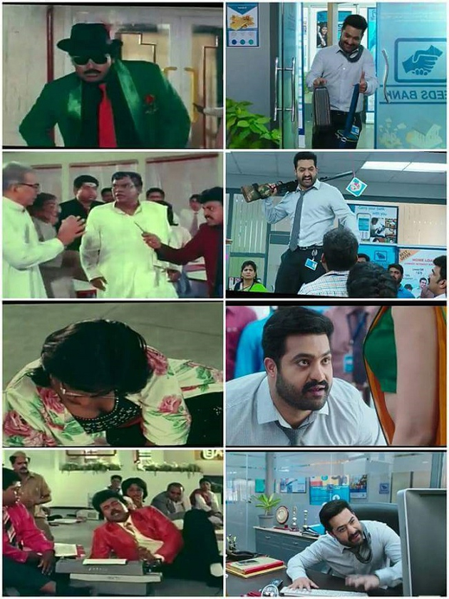 It is known that 'Jai Lava Kusa' trailer was released recently. There is a scene in the trailer in which NTR comes to office and watches Hamsa Nandini with awe.. then starts teasing the office colleagues. Netizens are comparing this scene with 'Rowdy Alludu' scene where Auto Johnny comes to office in place of Kalyan(both the roles played by Chiru) and does the same thing. Netizens have compared both the scenes and criticising JLK team for copying the scene. We have to wait and see how director Bobby is going to react to this criticism.