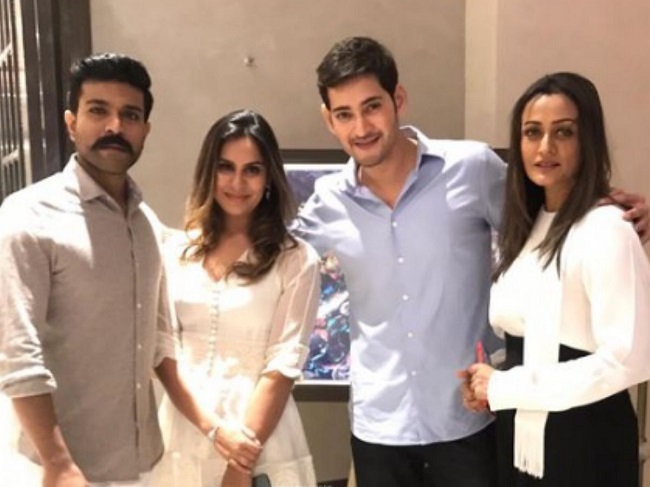 Nonetheless, this click showcases two power couples of Tollywood having a great time together. On the work front, Mahesh is about to wrap up 'Sarkaru Vaari Paata' which is coming out on 12th May. He will soon start his third film with Trivikram Srinivas and Pooja Hegde is the heroine in it. Ram Charan has recently scored a massive blockbuster with Rajamouli's 'RRR' and he is currently working on Shankar's political thriller. He also okayed a movie with 'Jersey' fame Gautham Thinnanuri.