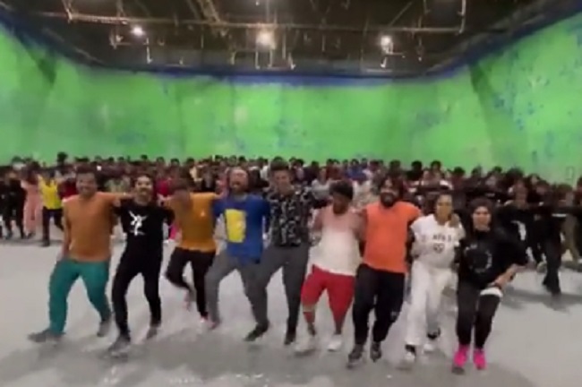 Ram Charan is yet to join the shooting of his upcoming film #RC15. But the preparations for the song shooting are going in full swing. Legendary Prabhudeva master is choreographing the song and he congratulated the team of 'RRR' with a cool gesture. He along with his large group of dancers did the famous 'Naatu Naatu' step. It was a pure delight to watch and the entire group were wonderful. This video also shows that this song is going to be grand and will be matching the standards of a Shankar song.