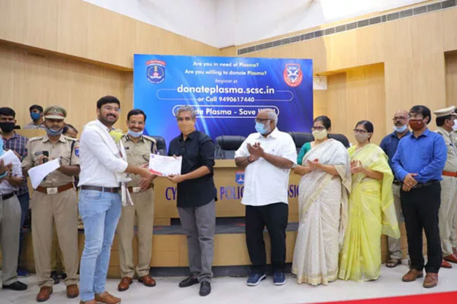 Now the director went ahead and felicitated the plasma donors in Commisionerate Office, Cyberabad in the presence of commissioner Sajjanar. Music Director Keeravani was also present at the venue and recited a poem about Plasma calling it as Sanjeevani.