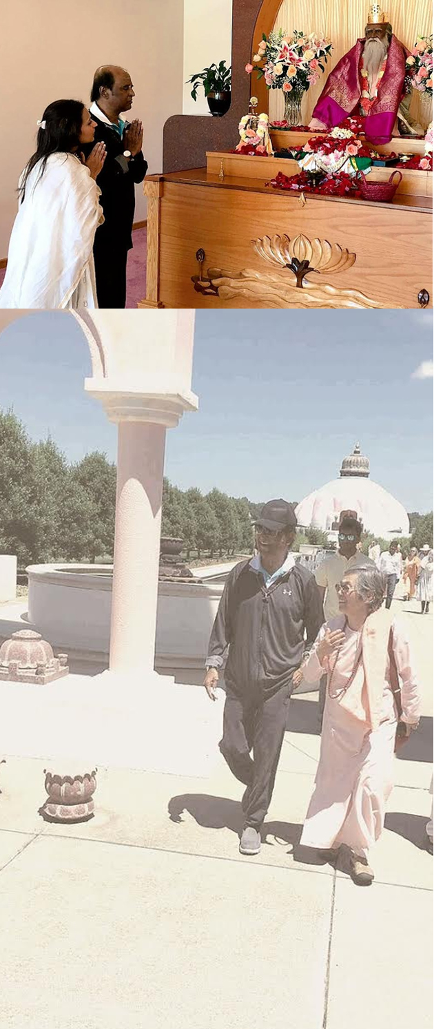 By: Tupaki Desk | 18 July 2016 9:59 AM ISTFrom the past few weeks, Rajinikanth has been in USA for medical check up and rejuvenation. The Superstar visited his guru Satchidananda's 'Lotus All Faiths Temple' Yesterday on the eve of 30th Anniversary at Yogaville, Virginia.