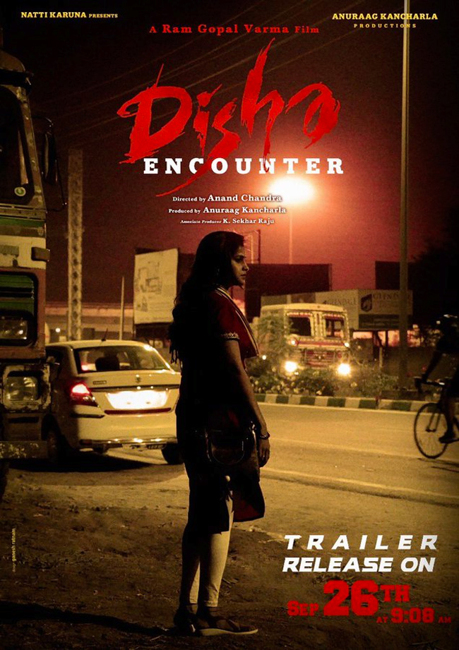 Now, RGV has announced that the movie trailer will be released tomorrow(September 26) at 9:08 am. The film will be produced by Anurag Kancharla and produced by Nutty Karuna. Anand Chandra is the director of this film. RGV has announced that the film will be released on November 26, the day of the Disha incident.
