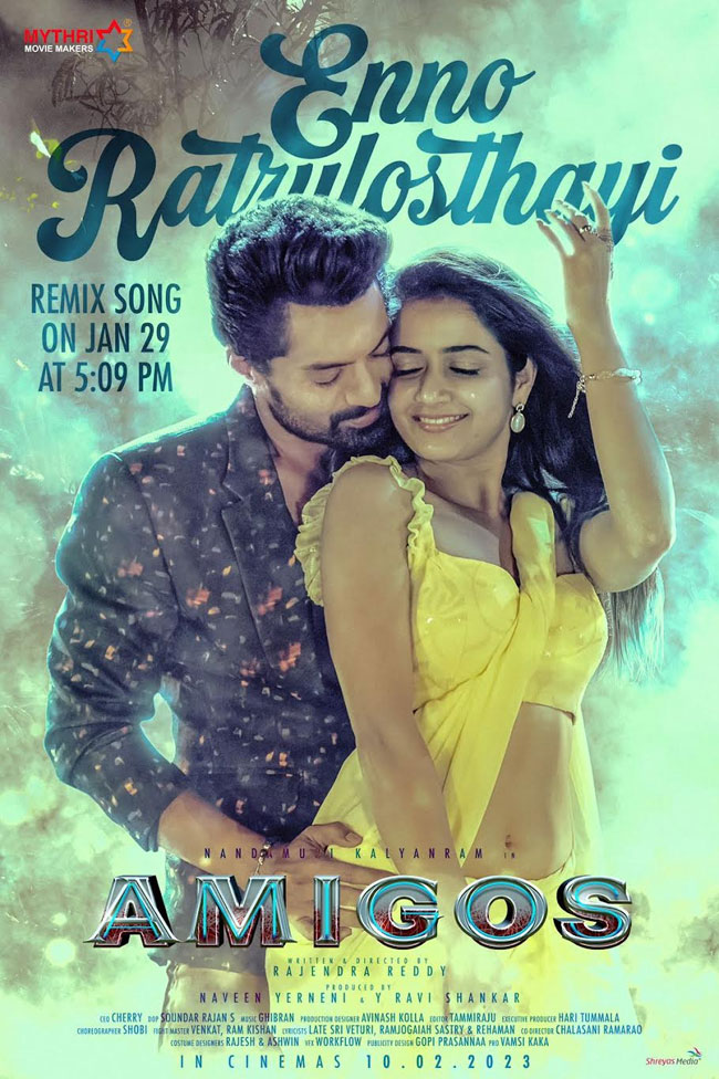 This iconic melody is getting remixed for Kalyan Ram's 'Amigos' and the song will be coming out on 29th January at 5:09 PM. The makers released a lovely poster where heroine Akshika Ranganath is looking glamorous in a yellow saree. She indulged in an alluring midriff show while Kalyan Ram is romantically holding her from the back. Let us  see if they remixed the iconic song without spoiling it or not.