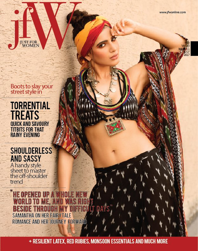 By: Tupaki Desk | 7 July 2017 6:44 PM ISTSamantha Ruth Prabhu has done a photo shoot for JFW Magazine in May last week this year. The cover page for which our Golden Leg posed in a glamorous avatar has been finally released into the market as July edition after a month-long waiting by fans. With her dressing, Sam showed how handloom materials can be used like swimwear or bikini. The Actress gave an indication through this shoot that she is in no mood to skip glamorous roles post marriage with Naga Chaitanya. If Akkineni Family is okay with it, why would anybody complain?
