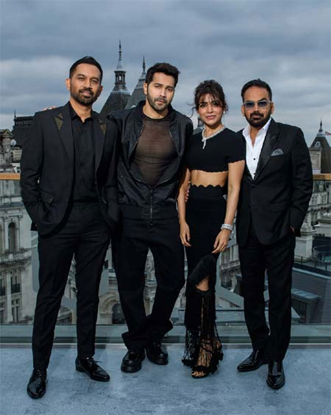 We can see the creators Raj & DK, hero Varun Dhawan and heroine Samantha dressed in all black and posing in front of a scenic location. Samantha looked amazing in this outfit from Victoria Beckham clothing. With a fashionable hairdo and designer jewelry, Samantha is just wonderful to look at and charming hero Varun Dhawan matched her style sense with his outfit. While the English version is getting positive reports, we need to see how the Indian version turns out.