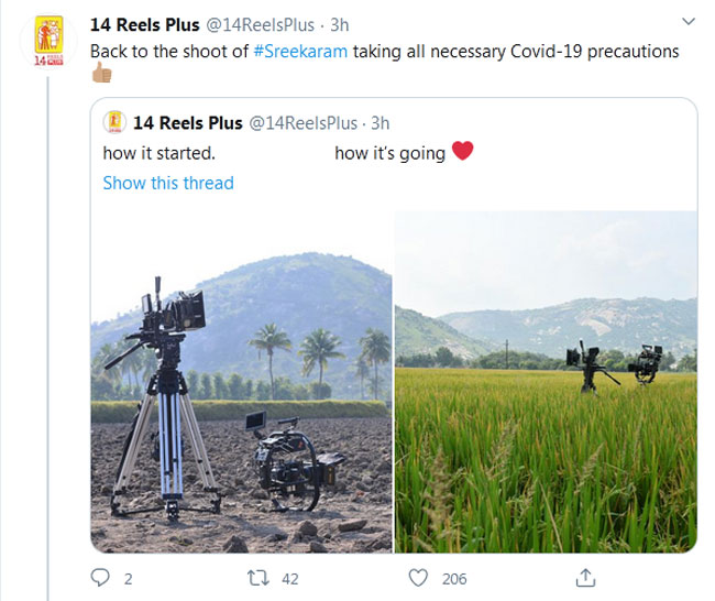 On the latest, the makers of the film tweeted saying they have resumed the shoot in Tirupati in the utmost safety conditions and posted the pics of how the film started and how it's going now!