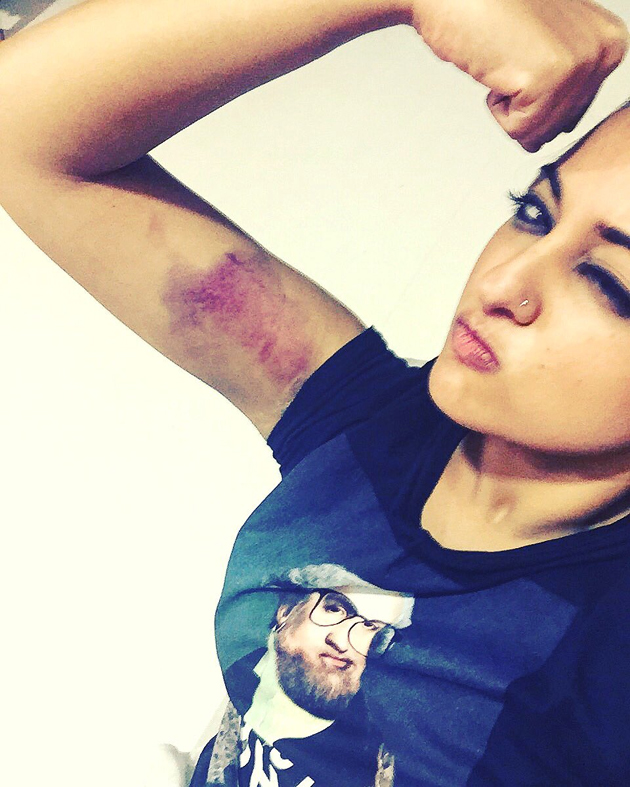 After impressing everyone with the trailer of AR Murugadoss "Akira", Sonakshi is busy revealing how hard she has worked for the film actually. "Battle scars are meant to be worn with pride! A memento frm when i was shooting an action scene for #Akira", said Sonakshi, while chatting about the same picture on her micro-blogging page.