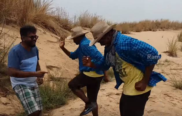Interestingly, he is not dancing with the choreographers but with the fight Masters Ram-Lakshman. Sukumar's Teenmaar dance is really awesome and it seems like video was taken in the shooting gap while Ram-Laxman are composing some intense fight sequences. However, we found out that Sukku can not only direct but dance as well.