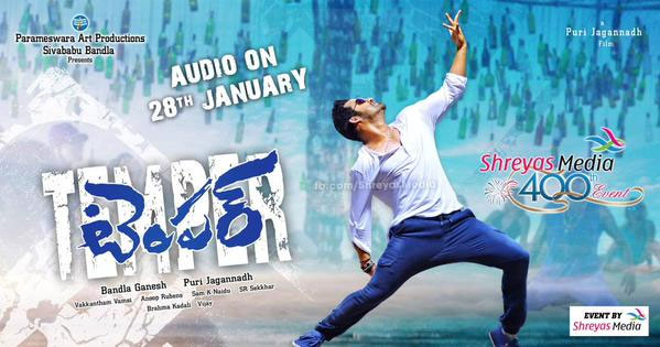 By: Tupaki Desk | 25 Jan 2015 11:00 PM IST'Temper' audio launch is scheduled to happen on January 28th in Hyderabad. The poster of the music release shows NTR in a never seen before avatar and this still seems to be from one of the songs composed by Anup Rubens. Another speciality of this event is that it marks Shreyas Media's 400th assignment. Fans are expected to attend in big numbers for this much-awaited event and makers were doing all the required arrangements.