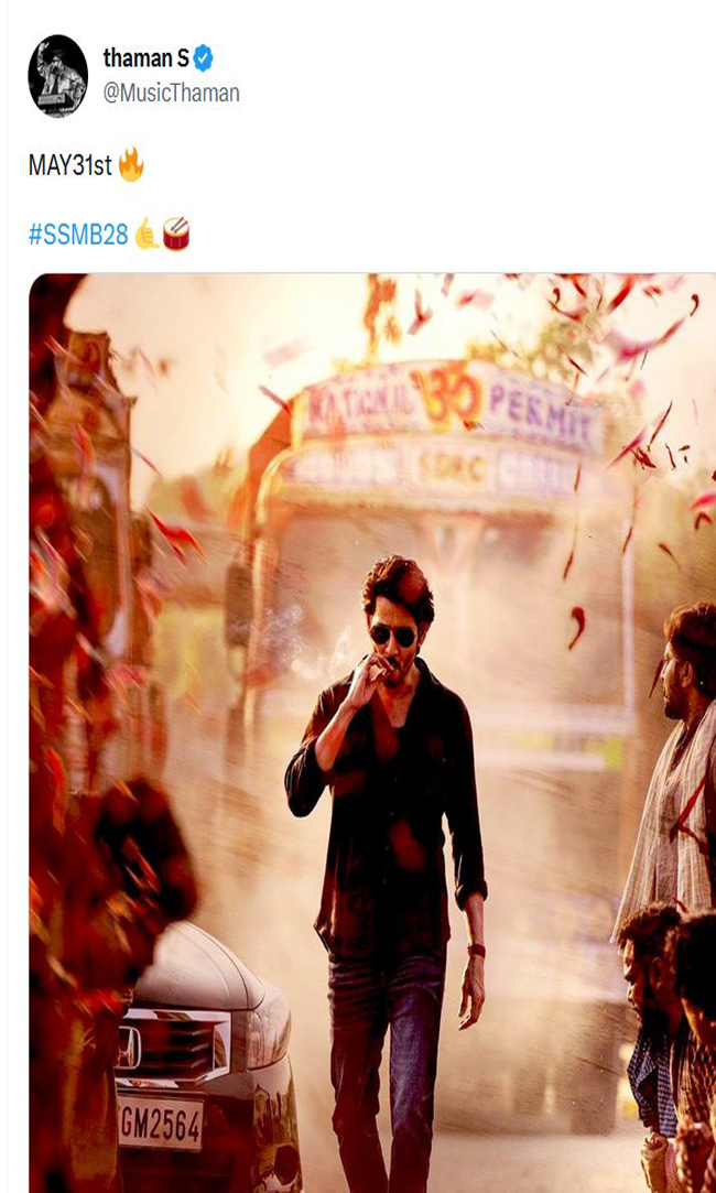 However, Thaman's recent tweet hints that he is still working on the project. He shared a poster related to SSMB 28 on May 31, announcing the release of a new song. The film has already created a record by finalizing its OTT deal with Netflix before the completion of shooting.