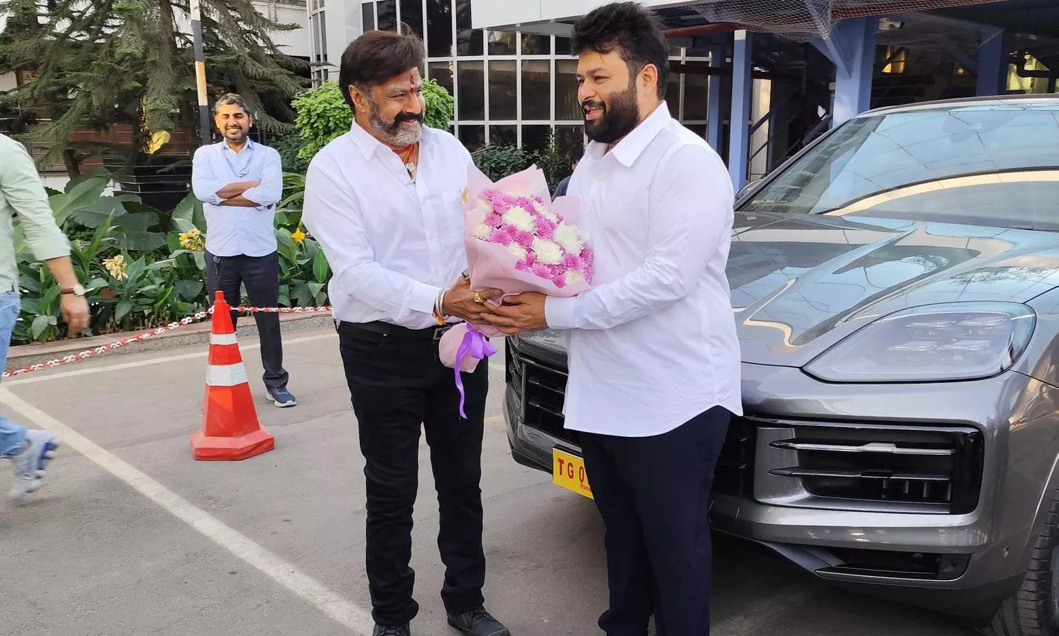 In tune with this, Balakrishna has now paid back the gratitude for Thaman as he gifted the talented music composer, a super costly Porsche car today.
