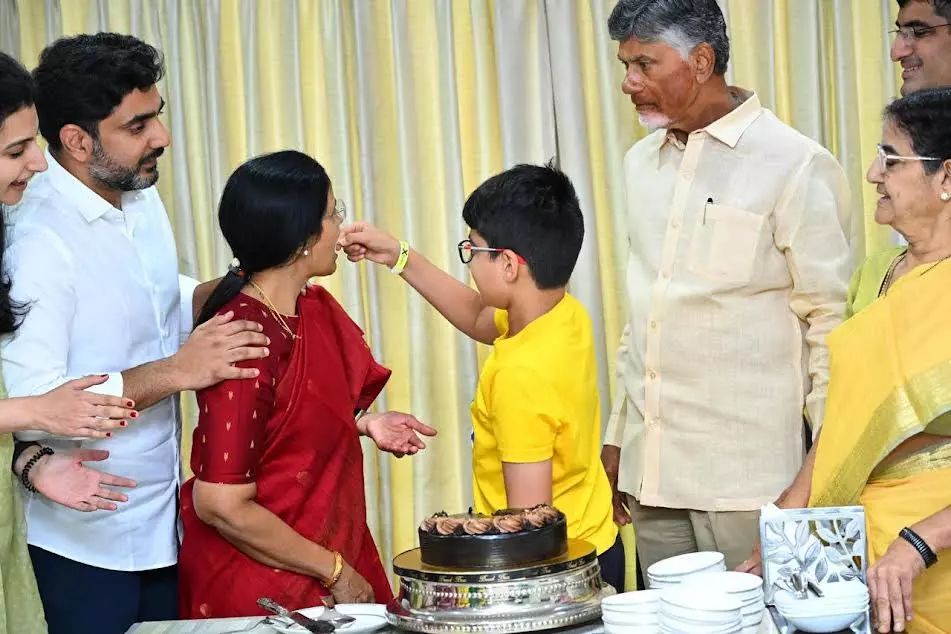 Amidst this, a celebratory mood enveloped CBN’s residence as photos of the festivities were widely shared. The pictures captured Mr. CBN were surrounded by his close family members, including his wife, son Lokesh, daughter-in-law Brahmani, and Balakrishna's wife. One notable image showed CBN’s grandson feeding him a piece of cake, symbolizing the joyous occasion.