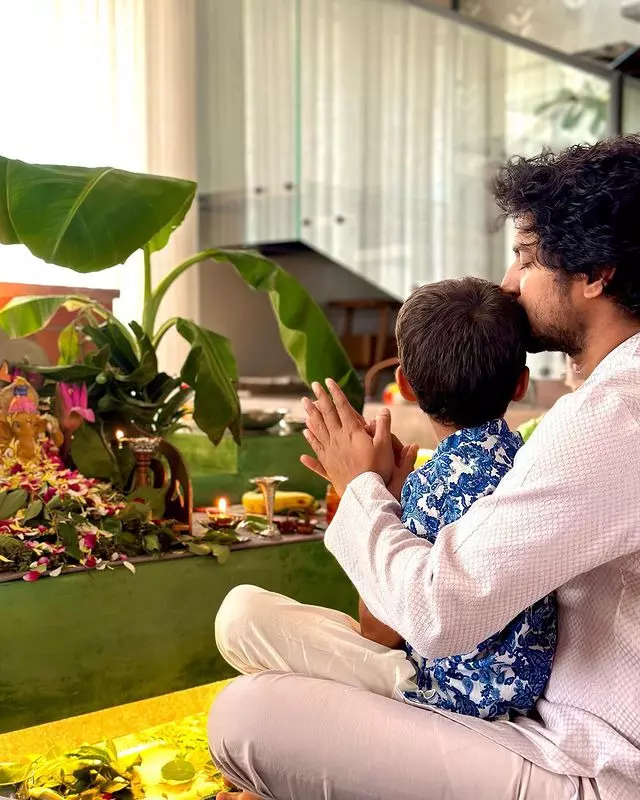 Natural Star Nani wished everyone a happy festival with the caption: Wish you all a very happy vinayaka Chathurthi. He shared a picture of him and his son praying to god.