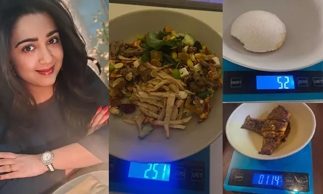 Recently, she shared pictures on social media showcasing her incredible weight loss. Dressed in a blue T-shirt and radiating confidence, Charmme was seen enjoying a meal at a dining table, flashing a beaming smile. What caught everyone’s attention, however, was her playful post where she counted the portions of her meal, from fish (weighing 0.114) to idly, omelet, and bread.