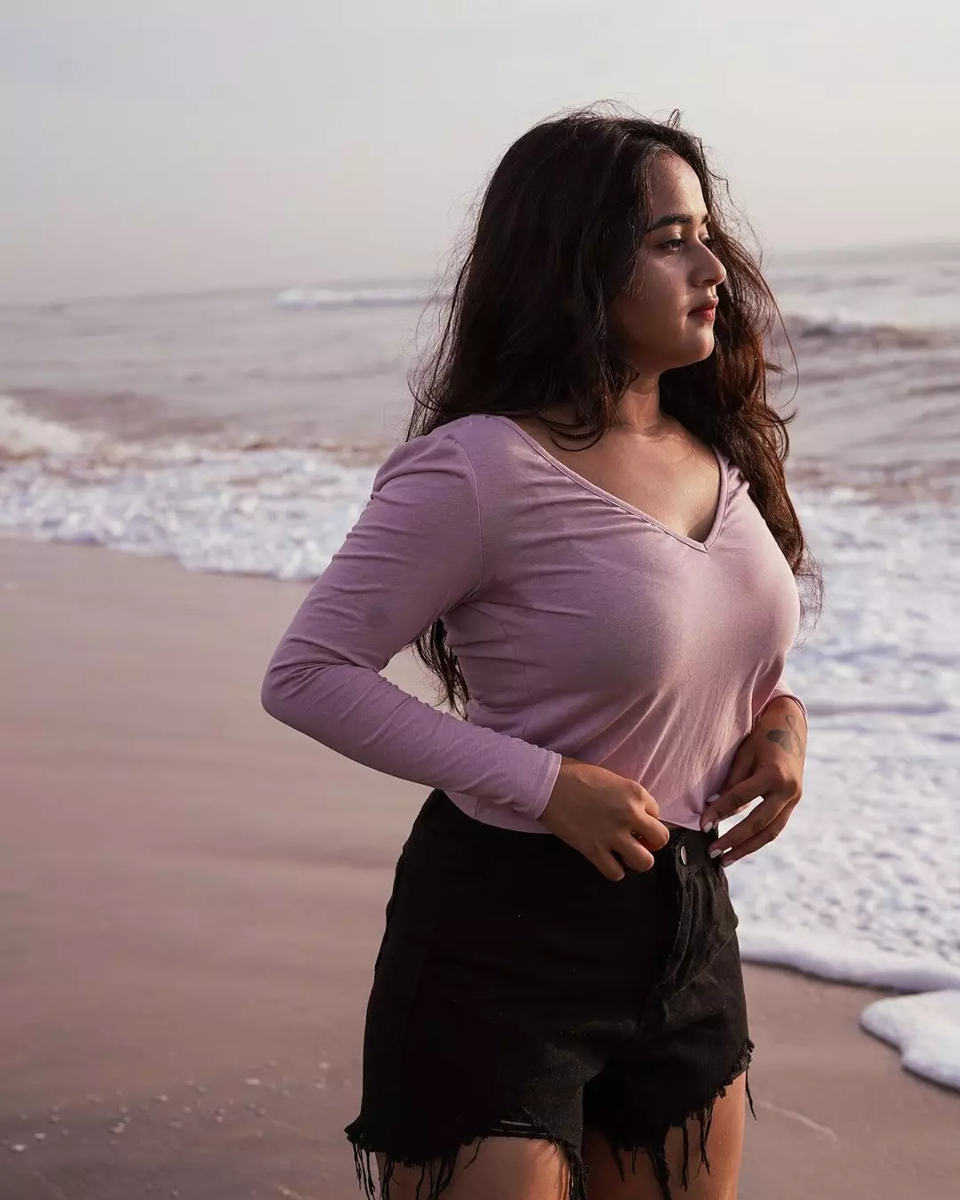 In the latest clicks of the actress, she looks like an absolute feast in a smoking hot outfit that elevates her curves to the fullest. The young Instagram influencer cum actress shows off her finely toned physique in these pics as she poses by the beach.