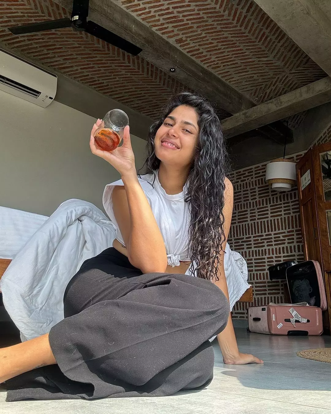 In her latest Instagram post, Faria is seen exuding natural beauty. She dons a comfortable and chic outfit: a white crop top with a knot at the hem paired perfectly with loose-fitting black pants.