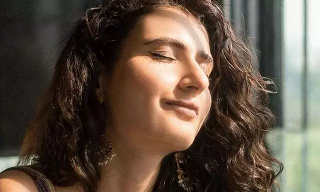 Her makeup is tastefully minimal, highlighting her radiant complexion with a subtle blend of earthy tones. Soft hues on her lips and eyes without overpowering her natural charm.