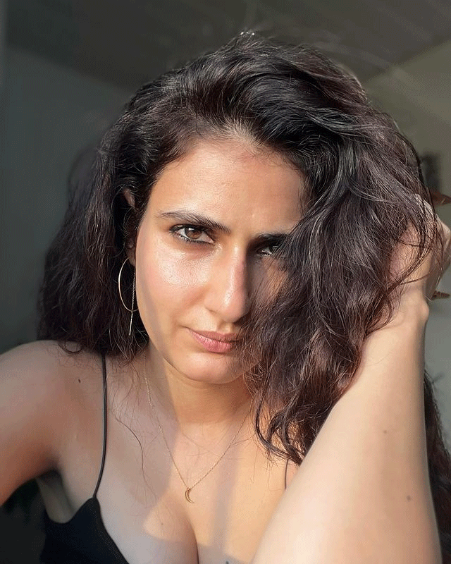 Dressed in a sleek black camisole, Fatima exudes a sense of effortless beauty