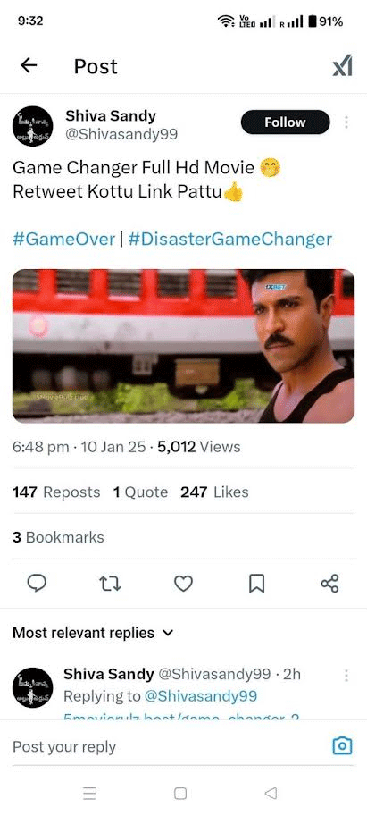 Social media platforms like Twitter, Instagram, Facebook and YouTube witnessed planned negativity about Game Changer. Some users shared movie clips and revealed key twists affecting the audience's enjoyment. Complaints have also been registered against these accounts and actions are expected soon.