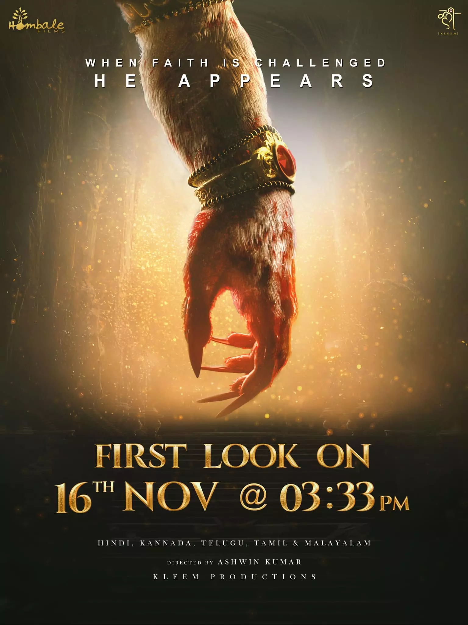By: Tupaki Desk | 15 Nov 2024 1:49 PM ISTThe mystery surrounding the latest poster from Hombale Films is enough to send chills down your spine. Like a shadow lurking just beyond the edge of the light, the poster reveals only a cryptic image of an animal's hand with giant, razor-sharp nails adorned with a golden bangle. The caption adds an air of intrigue, stating, "When faith is challenged, he appears..." suggesting something supernatural or larger-than-life. With such a thrilling teaser, it's clear that this is a project steeped in mystery and suspense, leaving fans on the edge of their seats.