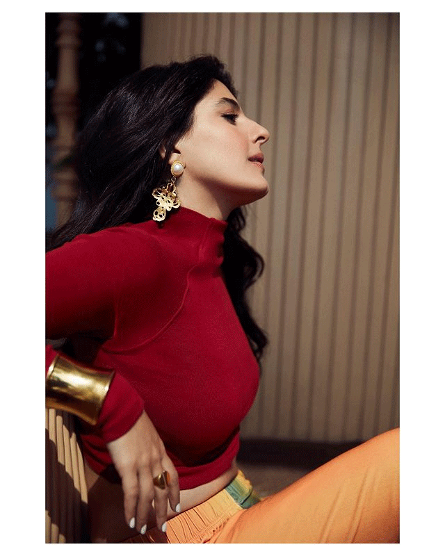 Isha Talwar is known for her amazing photoshoots, and her latest one was no exception. She looked fabulous in a red crop top and orange cargo pants, paired with gold cuff bracelets and pearl earrings. Her shiny hair added extra style to her look.