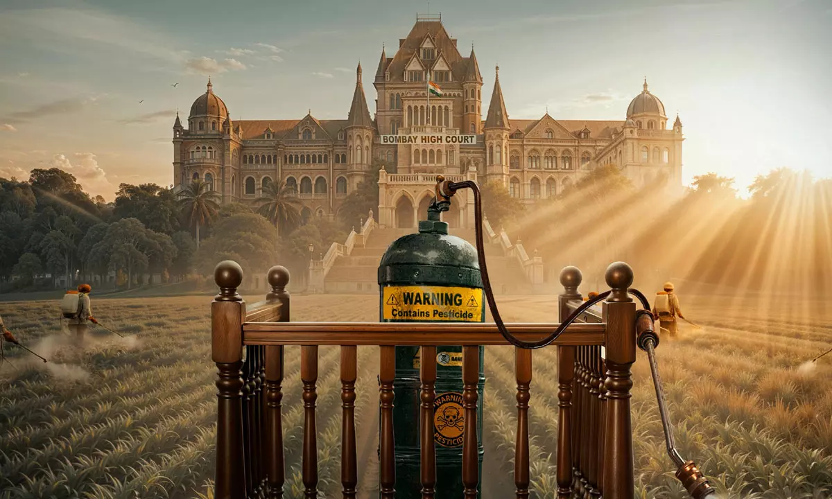 The release date poster sees a pesticide sprayer in the courtroom’s witness stand, hinting at the film’s core conflict. In the background, farmlands stretch under a haze of chemical spray, with masked farmers continuing their toil, while a towering court building adds a sense of looming judgment.
