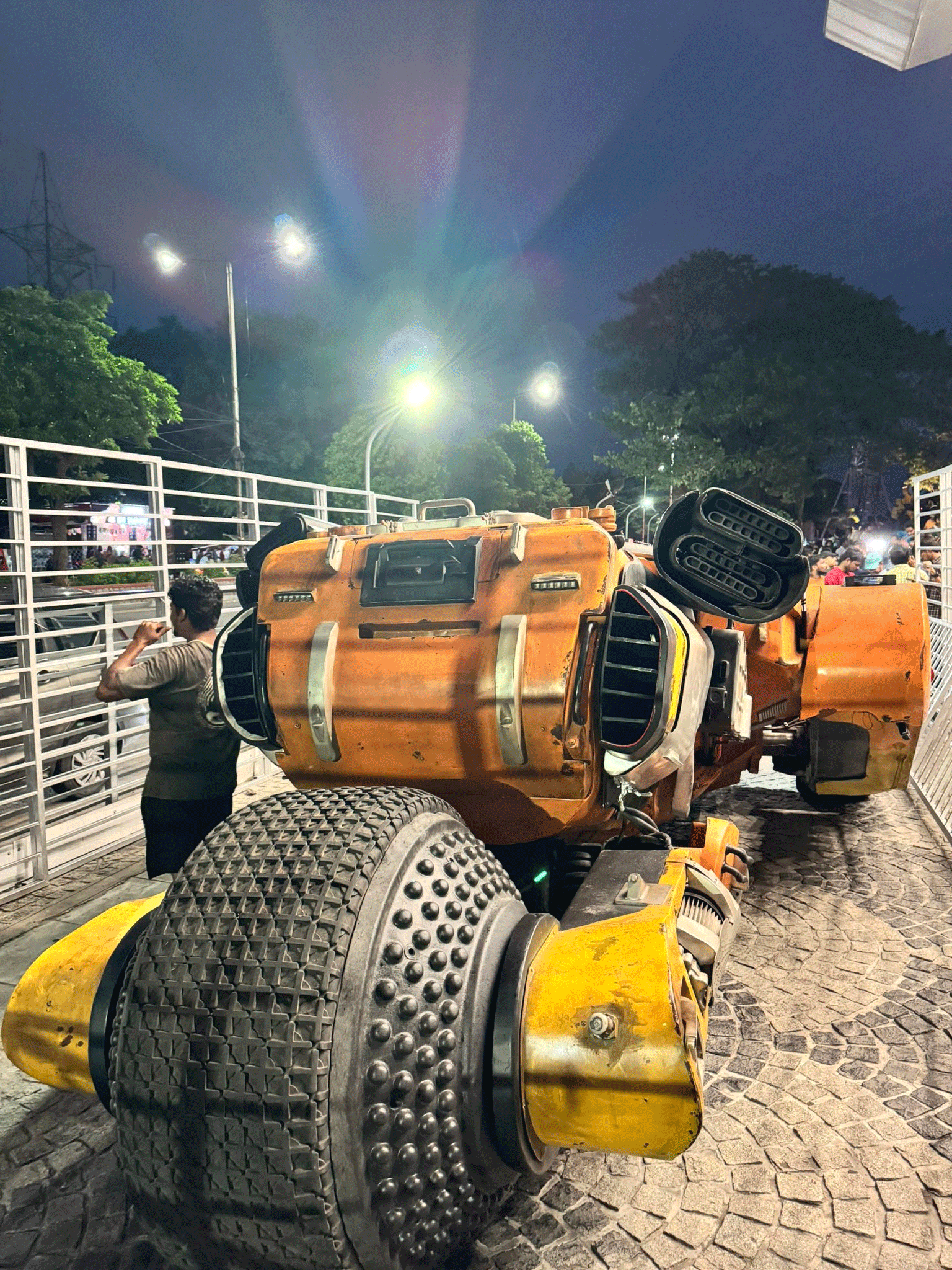 Prabhas plays the role of a bounty hunter named 'Bhairavaa' and he rides a specially designed vehicle named Bujji. It has launched in grand fashion even before the release and the vehicle was toured all over the nation for the promotions. It was kept on display for everyone to witness and it is specially designed by Mahindra Motors for this movie.