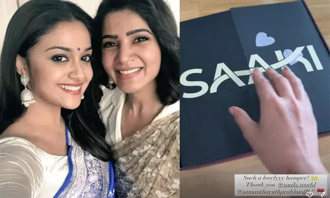Keerthy recently took to social media to share a heartwarming moment, unveiling a special gift from Samantha’s clothing brand, Saaki.